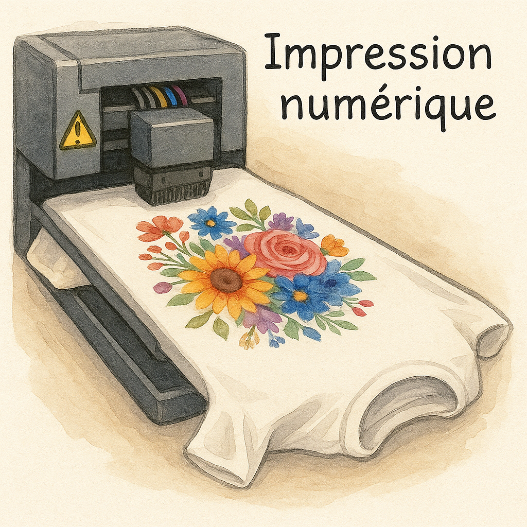 Sérigraphie artisanale, broderie, DTF, transfert, impression grand format : nous vous conseillons la technique la plus adaptée à votre projet.